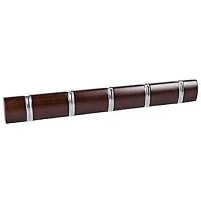 Merriway BH03306 Flip Style 5 x Hooks on Brown Rail with Satin Nickel Finish