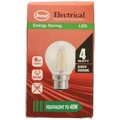 Pack of 1 LED Filament Bulb 4W G45 BC Warm White 2700K If instructions for fixing, assembly or maintenance of the products are included in the packaging then please ensure that they are followed Manufacturer: Merriway