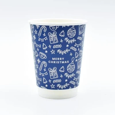 Merry Christmas 12oz Paper Cups Disposable Takeaway Coffee (Blue, 500)