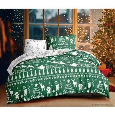 Merry Christmas Bedding Double Duvet Cover Set Green Reversible Noel Festive Xmas for Adults & Kids Soft Easy Care (GREEN, Double)