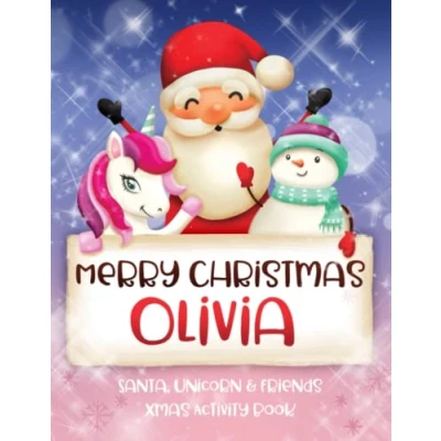 Merry Christmas Olivia: Fun Xmas Activity book Santa,Unicorn and friends Personalized for Children, perfect gift idea Olivia (Fun Santa, Unicorn & friends)