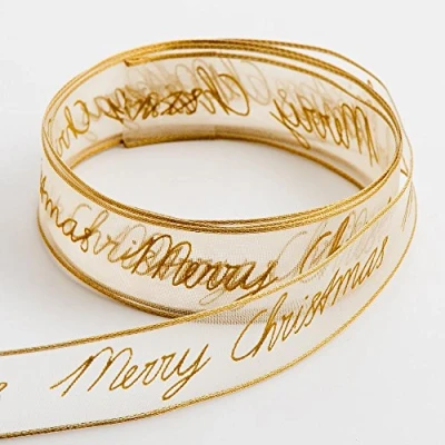 Merry Christmas Organza Ribbon Gold 25mm x 10 Metres