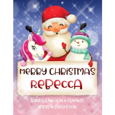 Merry Christmas Rebecca: Fun Xmas Activity Book Santa,Unicorn and friends Personalized for Children, perfect gift idea Rebecca