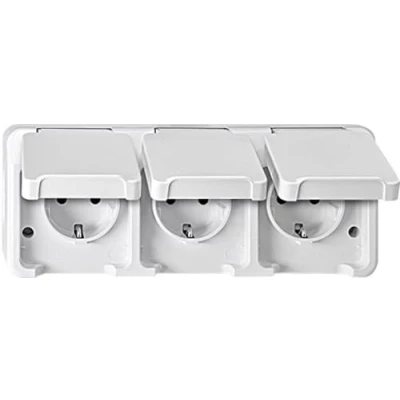 Merten Aquastar Horizontal SCHUKO triple socket, Surround. BRS, Polar White, MEG2390 8019