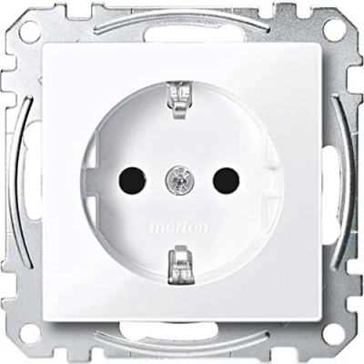 Merten MEG2300 0325 SCHUKO socket outlet, with integrated protection against accidential contact, plug in terminals, active white glossy, System M