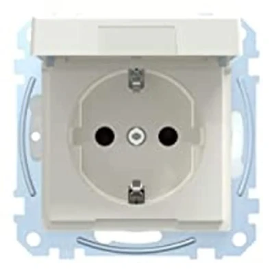 Merten MEG2314 0319 Schuko Socket with Hinged Lid, IP44, Touch Protection, Plug in Terminals Polar White Glossy, System M, Earthing Contact