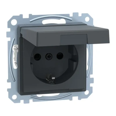 Merten MEG2314 0414 SCHUKO socket outlet with hinged lid, IP44, integrated protection against accidential contact, plug in terminals, anthracite, System M