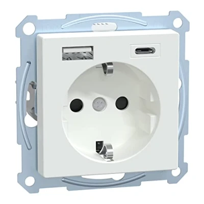Merten SCHUKO MEG2367 0325 Steckdose mit USB Ladegerät Typ A und C / 3.0 A, System M, aktivweiß glänzend
