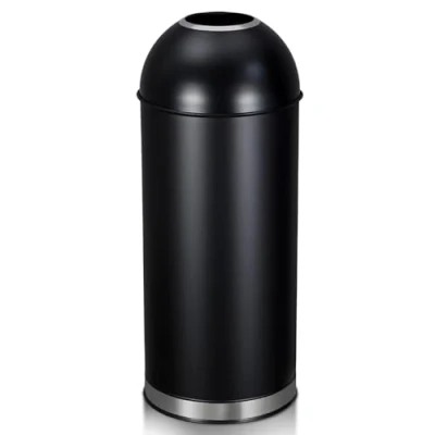 LARGE CAPACITY & HEAVY DUTY: 65 liters/17 gallons, this trash can is suitable for both domestic and commercial environments and meets different disposal requirements.It is constructed from sturdy rolled steel to withstand changes in time and temperature for unwavering strength SLEEK DESIGN: The high lid design elegantly covers the entire garbage bag, bringing exquisite and seamless visual appeal CONVENIENT WIDE OPENING: Lidless design makes throwing out the trash easier than ever, no more worry about using the pedal or touching the lid of the trash can, great for preventing exposure to germs, wide mouth design allows larger items to be thrown out EASY CLEANING: The commercial trash can features a black matte finish that is easy to clean and effectively hides fingerprints and smudges for a consistently stylish look.Simply wipe it with a damp cloth to keep it looking pristine WIDE APPLICATION: The trash bin is suitable for any scene. You can use it in various places such as bedroom, bathroom, living room, meeting room, office, study room, kitchen, apartment, dormitory, cabin, RV, etc