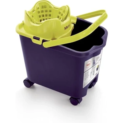 CUBE: It has four 360° rotating wheels. It has an attachment for the stick and a channel for pouring. With spring system and suitable for all kinds of people. Maximum resistance. 14 Litre Purple & Lime Drainer Bucket Size: 38.20 x 25.5 x 39 cm. FREGONA: Its high-quality cotton with special braid gives us a longer durability and allows us to quickly absorb, instant drying and easy drainage. Resistant to all types of chemicals. Its hexagonal head with universal thread adapter allows for perfect emptying. It adapts to the standard sticks of the market. 100% microfibre. The microfibre of this mop absorbs 10 times its weight in water and is the material most commonly used by cleaning professionals. Washable mop that retains its properties is suitable for all types of floors indoors and outdoors. Maximum attachment of the threads thanks to the cross production. It leaves no traces. Size: 9 x 9 x 26 cm. Stock: telescopic pole of 80 cm, extendable up to 140 cm. Made of plastic steel and universal thread. Size: 2x2x140cm