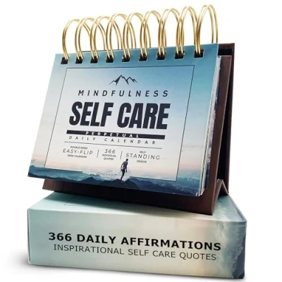 A Happier Way to Start Your Day - Make every day mindful with MESMOS mindfulness flip calendar desk decorations for women and men, designed to support calm and clarity and empower you to tackle the day with ease. Self Care Made Simple - Prioritize self care with a daily routine that will shift your mindset in minutes. Simply flip one of the 366 mindful reminders each day of the year and reflect on them to make your new work desk accessories work for you! Quality in the Details - This daily affirmations calendar is beautifully designed and include 366 front and back mindfulness quotes , sturdy base easel , gift box and stunning landscape scenes to help bring your mind into a state of relaxation and tranquility . The Perfect Office Desk Accessory - Embrace our Mindfulness Daily Calendar, the ideal office desk decor and motivational gift for coworkers. Elevate you and your team's mindset with mindfulness and gratitude! Thoughtftul Health and Wellness Gift- Give unique office supplies for women and men that will actually change lives. Your daily mindfulness perpetual calendar is the perfect spiritual gift for women and men on a journey to relieve stress and improve health and wellness.