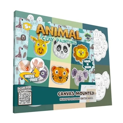 Mess Free Animal Clay Painting Kit, Air Dry Modelling Sensory 3D Canvas Fun Arts and Crafts Kit for Kids, Pre Framed 40x30cm with Tools & Idea Guide Fun, Hands On Gift Creativity