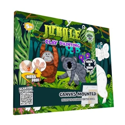 Mess Free Jungle Clay Painting Kit, Air Dry Modelling Sensory 3D Canvas Fun Arts and Crafts Kit for Kids, Pre Framed 40x30cm with Tools & Idea Guide Fun, Hands On Gift Creativity