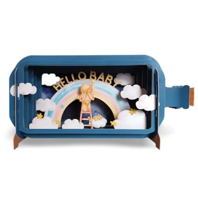 You are viewing: A 'Message In A Bottle' Pop Up greeting card Occasion: New Baby Message: The card has been left blank with space on the rear for your own personal message Details: An innovative laser cut pop up greeting card perfect for someone special celebrating the birth of a new baby Closed Size: 24cm x 12cm 9" x 5"