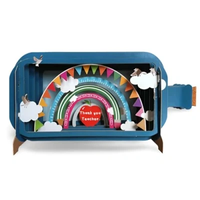 Treat them to a 3D bottle shaped card, this laser cut card is the perfect greeting card for a special occasion You are viewing: A 'Message In A Bottle' Pop Up greeting card Occasion: Thank You Details: An innovative laser cut pop up greeting card perfect for saying thank you to that special Teacher Closed Size: 24cm x 12cm 9" x 5"
