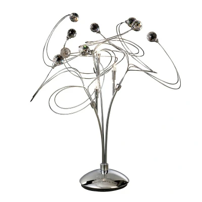 An impressive collection of Polished Chrome wires artistically entangled and finished with Asfour crystal spheres. The flexibility of the wires allows a tolerance of modification to personalise the products. The ultra white light from the lamps and the hundreds of reflective surfaces truly create a magnificent lighting fixture. Table and Floor lamps are supplied with in-line dimmers for creating that perfect atmosphere.