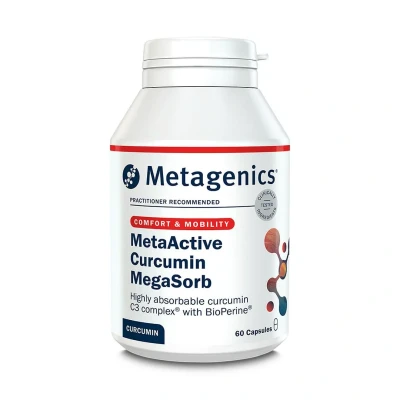 Previously Curcumin MegaSorb - 60 Capsules | Nutri Advanced MetaActive Curcumin MegaSorb provides a clinically-researched, highly bioavailable form of curcumin designed to support inflammatory balance, joint health, and overall well-being. Featuring Curcumin C3 Complex®, a patented blend of three curcuminoids, this powerful formula offers potent antioxidant protection while helping to regulate multiple inflammation pathways in the body. To further enhance absorption, this formula includes BioPerine®, a patented black pepper extract shown to significantly improve curcumin bioavailability. Sustainably sourced from non-GMO turmeric, MetaActive Curcumin MegaSorb is a trusted choice for those looking for natural inflammatory support backed by extensive scientific research. Ideal for individuals looking to support joint health, mobility, brain function, and healthy inflammatory response. This premium curcumin complex delivers targeted relief in an easy-to-take capsule format.
