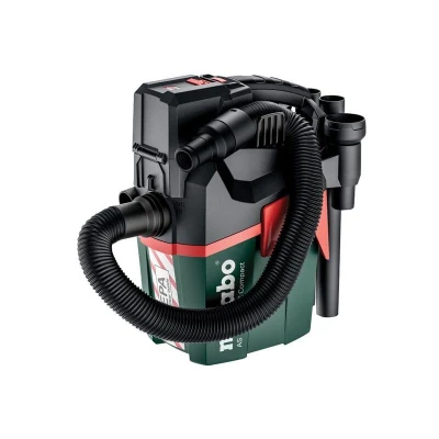 General description The Metabo AS 18 HEPA Vacuum Cleaner is a portable and compact cordless vacuum designed for wet and dry vacuum cleaning (IPX4). It features a HEPA filter that captures 99.95% of fine dust, making it ideal for smaller cleaning and extraction jobs. The vacuum is equipped with an eco mode for extended battery runtime and a boost mode for maximum power. Additionally, it includes an integrated blow function for blowing out, drying, and drawing off exhaust air. Technical specifications Max Air Output: 2,100 L/min Vacuum: 120 hPa (mbar) Container Volume: 6 litres Filter Surface: 3,000 cm² Suction Hose Length x Diameter: 2.5m x 32mm Weight: 3.8 kg (without battery pack) Compatibility and accessories Compatible with all CAS (Cordless Alliance System) batteries from various brands including Metabo, Mafell, Rothenberger, and more Supplied with: 1 x Stretchy Suction Hose Ø32mm x 0.5-2.5m 1 x Coupling Bush: internal Ø28mm / external Ø35mm 3 x Plastic Suction Tubes 1 x