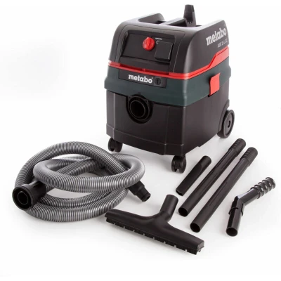 General description The Metabo ASR 25L SC Wet & Dry Vacuum Cleaner is a mobile and compact vacuum designed for both liquids and dry solids, making it ideal for various applications such as cleaning construction sites, workshops, and vehicles. It features an electro-magnetic vibration device for efficient filter cleaning and is certified for extracting dust particles of dust class L. Technical specifications Input Power: 1,400 Watt Capacity: 25 Litres (Wet/Dry) Max Air Flow: 3,660 l/min Vacuum: 248 m/bar Suction Hose Diameter: 35mm Weight: 11kg Compatibility and accessories Includes 1 x Suction Hose (35mm x 3.2m) 1 x Handle Adaptor 2 x Plastic Suction Pipes 2 x Polyester Filter Cassettes (M Class) 1 x Nylon Web Filter Bag 1 x Grouting Nozzle 1 x Universal Nozzle Installation Automatic shut-off when the maximum filling height is reached during liquid vacuuming Integrated socket with automatic start mechanism for power tools Usage Suitable for extracting dust and chips from power tools