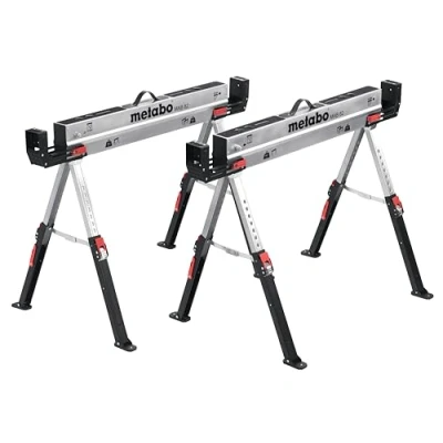Two robust and stable steel trestles with powder-coated, galvanised surfaces Height-adjustable legs for optimal working height Compact transport dimensions and simple, easy to assemble in seconds Adjustable, side squared timber holders to connect two trestles together Openings for locking clamps or screw clamps and for fixing semi-stationary machines such as a mitre saw, Weight: 22.487150724 pounds, Manufacturer: metabo