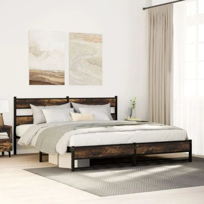Metal Bed Frame without Mattress Smoked Oak 180x200 cm Super King Vidaxl
