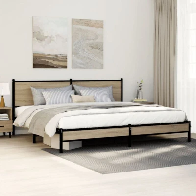 Metal Bed Frame without Mattress Sonoma Oak 200x200 cm Vidaxl