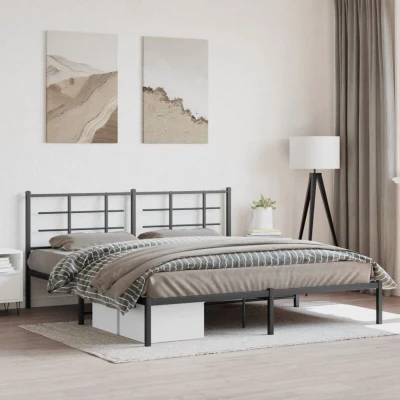 Metal Bed Frame without Mattress with Headboard Black 183x213cm Vidaxl