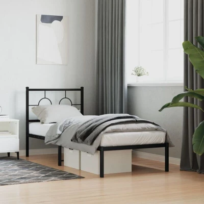 Metal Bed Frame without Mattress with Headboard Black 80x200cm Vidaxl