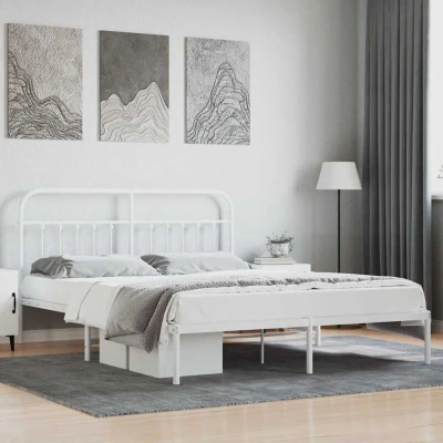 Metal Bed Frame without Mattress with Headboard White 160x200cm Vidaxl