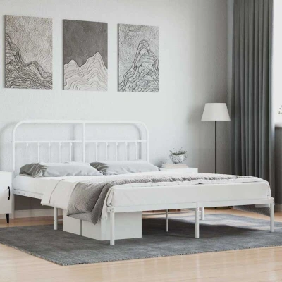 Metal Bed Frame without Mattress with Headboard White 180x200cm Vidaxl