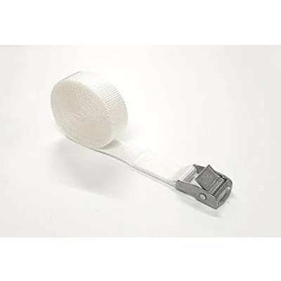 25mm Metal Cam Buckle Tie Down Strap 3 Metres Long Available In White. Wide Rage Of Uses - securing storage, luggage, warehousing, trailers, car roof racks, camping accessories, heavy items and strong loads. Easy To Use - This metal cam buckle is quick and convenient to use by pressing the cam buckle with thumb to allow webbing to pass through. Adjustable - You are able to pull these straps as tight as you can to ensure security and stability. Made In the UK By Church Products UK.