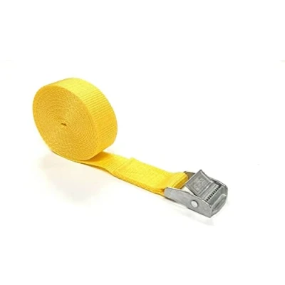 25mm Metal Cam Buckle Tie Down Strap 3 Metres Long Available In Yellow. Wide Rage Of Uses - securing storage, luggage, warehousing, trailers, car roof racks, camping accessories, heavy items and strong loads. Easy To Use - This metal cam buckle is quick and convenient to use by pressing the cam buckle with thumb to allow webbing to pass through. Adjustable - You are able to pull these straps as tight as you can to ensure security and stability. Made In the UK By Church Products UK.