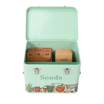 Metal Garden Seed Storage Box with Dividers and Envelopes, 22.5 x 16.2 17 cm (Mint Grey)