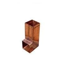 Copper Guttering Square 80x80mm Downpipe Shoe Description Our Square copper downpipes are manufactured from 100% natural 0.6mm copper and are supplied in 2.4m lengths, making both transportation and installation uncomplicated. Each length is swaged at one end so they push fit together, with additional joints available so you can use up all your off cuts. 1mm thick heavy duty pipes are available for high risk areas such as alley ways and school playgrounds. Standard profile measures: 80 x 80mm  . Metal Gutta Copper 80x80mm Square Downpipe Shoe