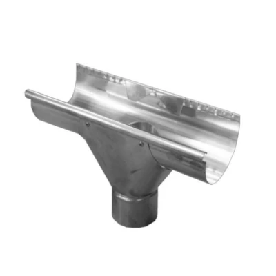 The running outlet connects the guttering and downpipe seamlessly into the drainage system. Its design allows both the guttering and downpipe to attach with unmatched ease for swift installation. An offset bend can be added to form a swan neck, enhancing its versatility. The Metal Gutta Stainless Steel 185mm Half Round Gutter Running Outlet fits an 80mm downpipe, offering efficient performance. This indispensable component is essential for any drainage setup, providing convenience and adaptability in use.. Metal Gutta Stainless Steel 185mm Half Round Gutter Running Outlet - 80mm Silver