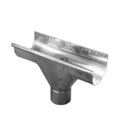 The running outlet connects the guttering to the downpipe seamlessly. It allows the guttering to slot into the Zinc Gutta running outlet with ease, while the downpipe clips to the bottom effortlessly. Whether you need a straight pipe or an offset bend for a swan neck, this running outlet is an ideal choice. Made from zinc, it's cost-effective, with a life expectancy of at least 100 years. The Swiss-designed outlet is durable, weather-resistant, and 100% recyclable, ensuring it helps reduce your carbon footprint. This 125mm Half Round Gutter Running Outlet suits an 80mm downpipe. This component is vital for enhancing your drainage system with longevity and sustainability in mind.. Metal Gutta Zinc 125mm Half Round Gutter Running Outlet - 80mm Silver