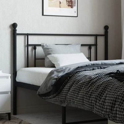 ManoManoGeneral description Featuring a stylish design, this classic black metal headboard enhances the look of your bed frame and suits any bedroom decor. It is constructed from robust powder-coated steel, ensuring exceptional sturdiness and stability. Technical specifications Colour: Black Material: Steel Overall dimensions: 112 x 3 x 97 cm (L x W x H) Suitable mattress width: 107 cm Assembly required: Yes Compatibility and accessories The bed frame and mattress are not included in the delivery. This headboard is only suitable for beds with round tubes from our shop. Usage The headboard provides excellent back support when sitting up in bed, making it ideal for reading or watching TV. Other information
