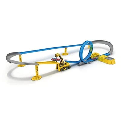 Motorised speed booster that always keeps your metal machines in the run. 2 extremely fast and aerodynamic metal machines! A construction machine throwing stone blocks to knock cars out of the racetrack! A loop and a stunramp! Two exclusive metal machines: Specter and Justice!, Manufacturer: Zuru Metal Machines