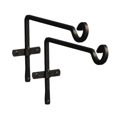 The elegant angles of these steel hooks means they both look smart and are practical in the home and garden. These hooks are ideal for hanging baskets, lanterns, bird feeders and are also handy for storing tools and other garden sundries. Made from black powder coated steel, the hooks come in a pack of two and arrive with the fixings needed to hang where required. * Ideal for hanging baskets, planters, lanterns & bird feeders * Dimensions: 29cm L x 5cm W (at cross bar) x 17cm H * Can be used indoors or outside * Durable weatherproof coating * Set of 2