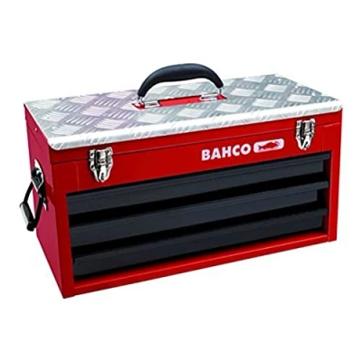 Metallic case with 3 drawers and upper tray Compact case with excellent capacity, combining drawers for small tools and upper tray for medium sized items Case can be secured with standard locks via metallic latches Double-wall frame protects the slides and drawers from shocks/crashes Reinforced areas reduce stress at specific points Long ball bearing slides with 100% opening drawers Click/detent closure system Drawers are locked when lid is closed Drawers internal dimensions: (3x) 455 mm x 208 mm x 39 mm Upper tray internal dimensions: (1x) 520 mm x 250 mm x 60 mm Top cap assembled with corrugated sheet metal Skydrol resistant Specially used in aeronautical industry , Manufacturer: BAHCO