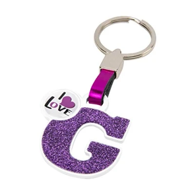 Metallic Key Ring Finished with shiny inlays. Letter "G" Phrase: "I love" Color Pink