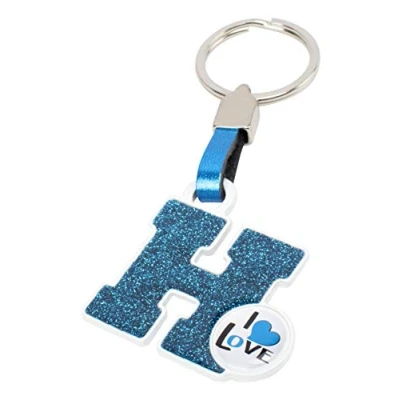 Metallic Key Ring Finished with shiny inlays. Letter H Phrase: "I love" Color Blue