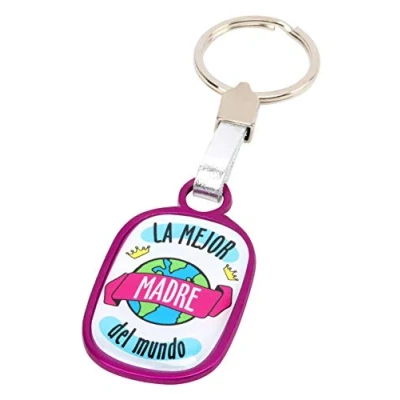 Metallic Keychain Phrase "The Best Mother In The World", Fuchsia Color.