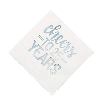 Metallic Silver Foil Stamped 25th Anniversary Luncheon Napkins (16cm) Pack of 16 Elegant for Celebration