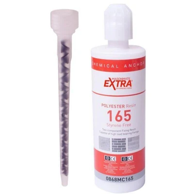 General description The MasonMate Chemical Anchor Resin is a two-component injection system designed for anchoring threaded rods in various materials. It offers high bond strength and fast curing times, making it suitable for time-sensitive applications. Its styrene-free formulation allows safe indoor use, including in enclosed spaces. This versatile resin is effective in masonry, hollow, and aerated concrete, providing reliable anchoring for medium loads in non-critical applications. Technical specifications Volume: 165ml per unit Type: Two-component chemical resin Formulation: Polyester SF resin, styrene-free Application: Anchoring threaded rods in masonry and concrete Working time: Fast curing for early load application Approval: ETA certified for concrete and masonry/hollow wall installations Compatibility and accessories Compatible with threaded rods and anchors designed for chemical fixing Suitable for use in damp and wet environments Installation Inject the resin into the