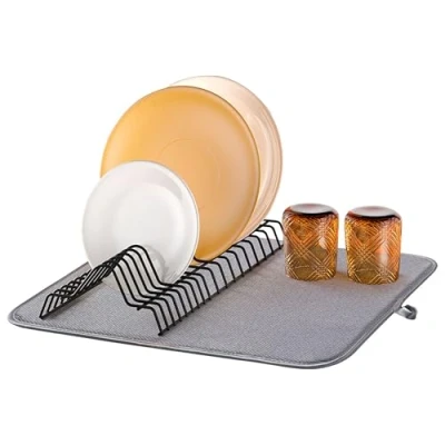 Metaltex Dish Drainer with Mat in Microfiber, Black and Grey, 45 x 40 7 cm