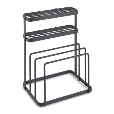 Metaltex Knife & Cutting Board Organiser Rack and Chopping Holder With Touch Therm Finish for Rust Scratch Resistance Efficient Space Saving Storage Solution Black, 16 x 12 22 cm