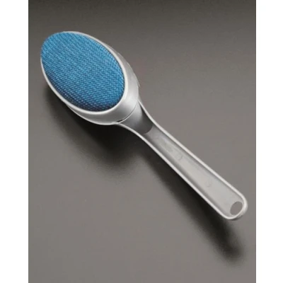 A handy textile brush for removing fluff just rub over clothes to make them look new again Brush has an attractive silver body with velvet blue brush Head rotates for ease of use - left or right handed A handy device for the home Removes hair as well as lint from clothes and other textiles Suitable for left and right-handed users Dimension: 38 x 9.5 x 6 cm