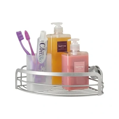 Corner shelf ideal for storing shampoo bottles and other bathroom products Hang at a convenient height in the corner of a bathroom or shower cubicle Set of 2 SafeFix adhesive wall fixings included, can be hung without the need for tools and drilling into bathroom tiles Exclusive Polytherm protective coating, guarantees a rust resistant silver finish Product dimensions: 20 x 20 x 6 cm