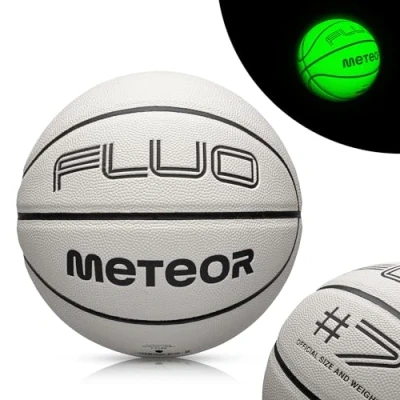 meteor Layup Basketball Fluorescent Glow Ideal for Kids, Youth, Women & Men Indoor Outdoor Training Ball Non slip Surface Size 7 Colour: White Green